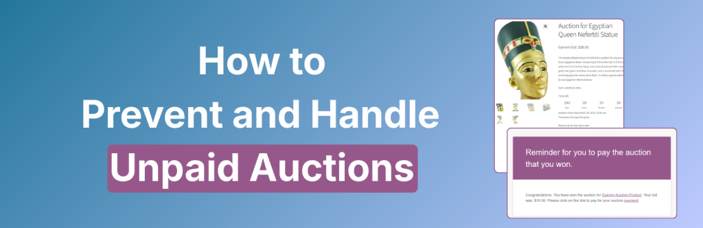 Non-paying auction winners are one of the biggest challenges in managing online auctions. This tutorial explains how WooCommerce Simple Auctions helps prevent non-paying bidders, and what options sellers have when a winning bidder doesn’t complete payment.