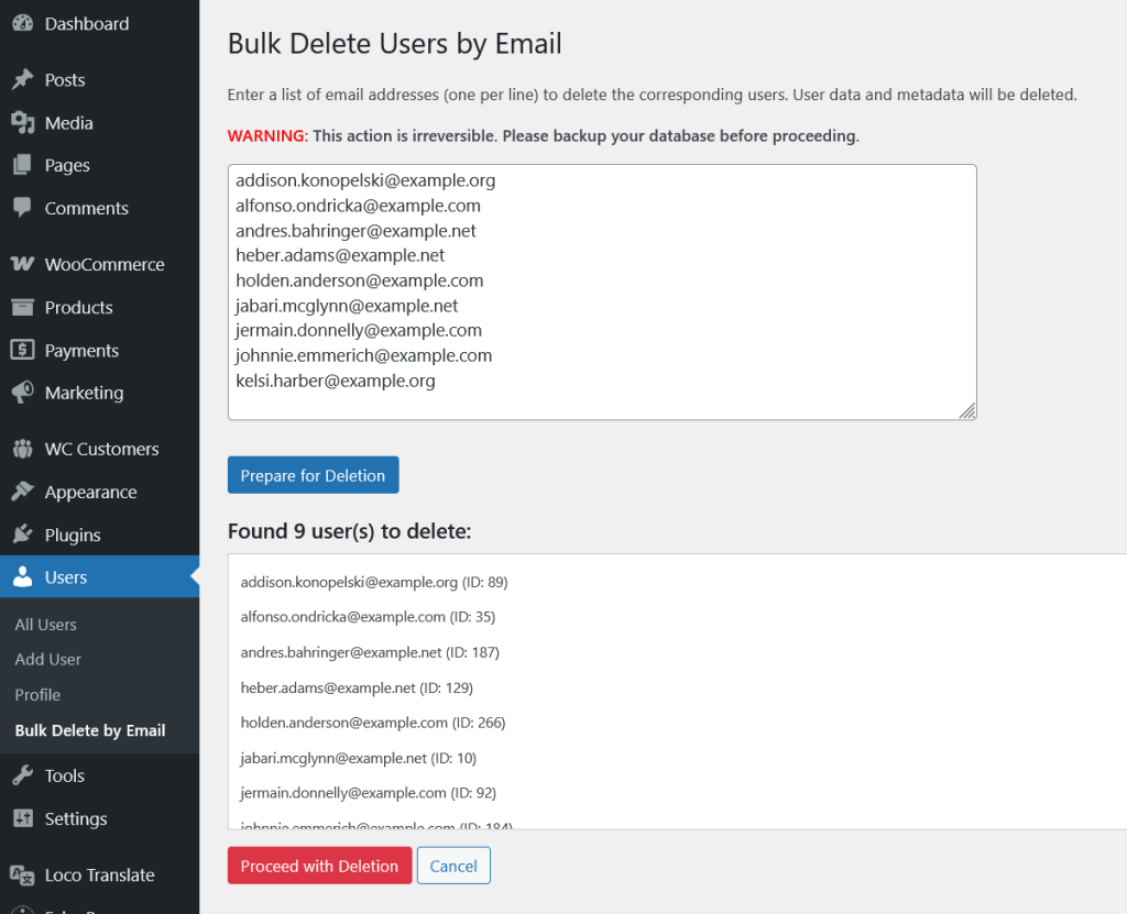 Install Bulk Delete Users by Email, back up your database, and clean up your user accounts efficiently!