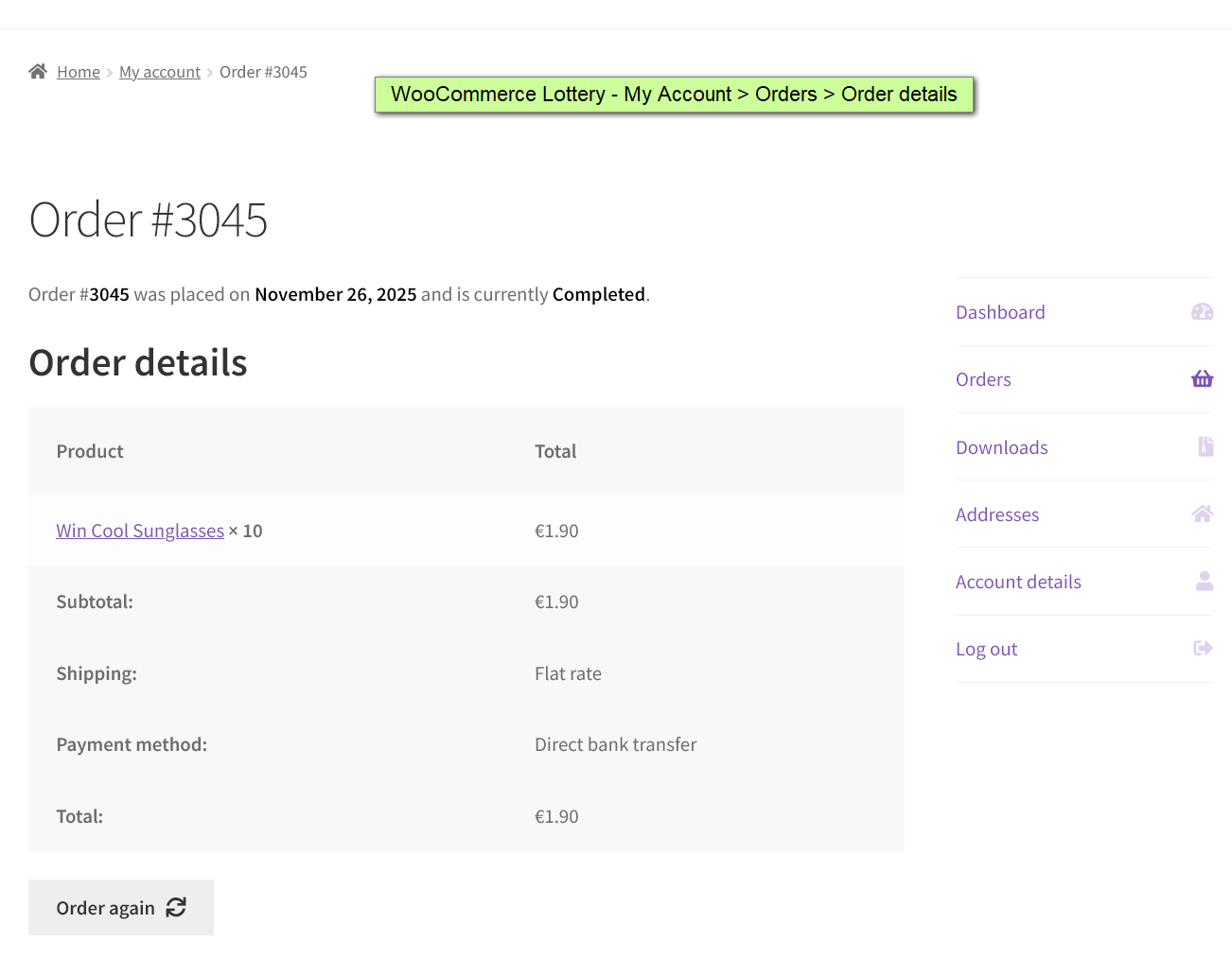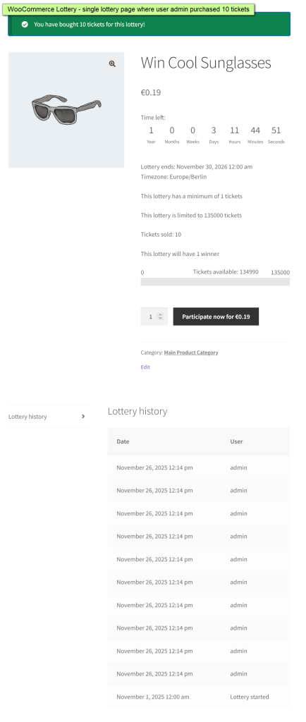 In this article we’ll explain the mechanism behind WooCommerce Lottery plugin, when customers simply buy entries and prize draw is NOT using ticket number. We’ll also show options for prize draws where ticket numbers are required.