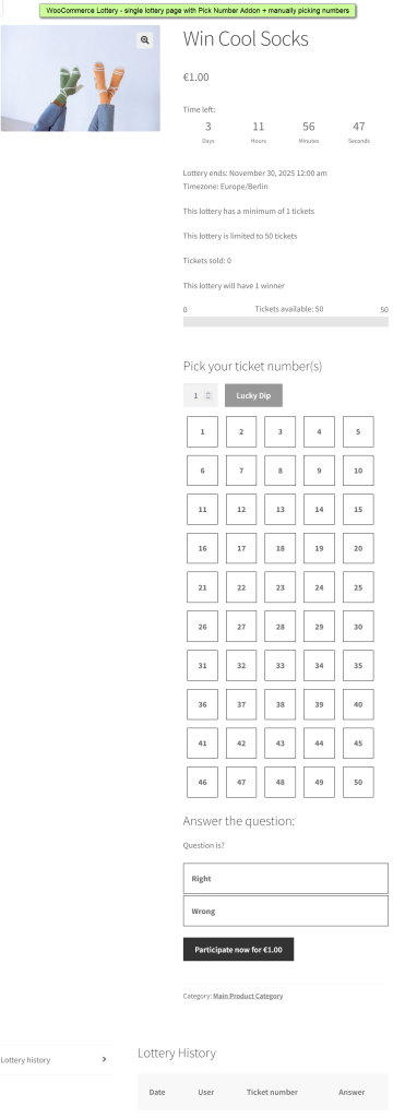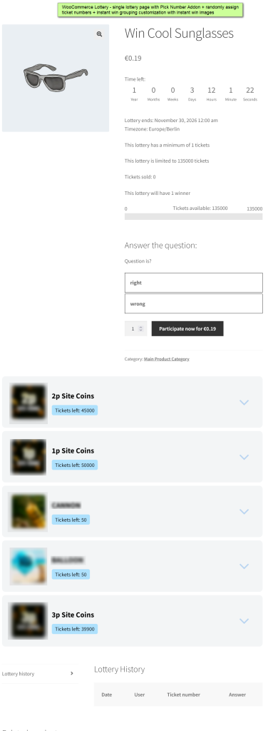 Of course, a prize draw without ticket numbers isn’t always the right solution. If you need ticket numbers for your lotteries/raffles, or you need an option for skill-based competitions with question/answers, we offer Pick Ticket Number addon for WooCommerce Lottery.