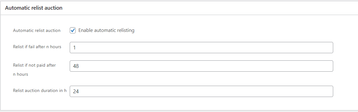 You can set the plugin to automatically relist any auction where the winner hasn’t paid within a set number of hours. Once that time passes, the auction goes back up.