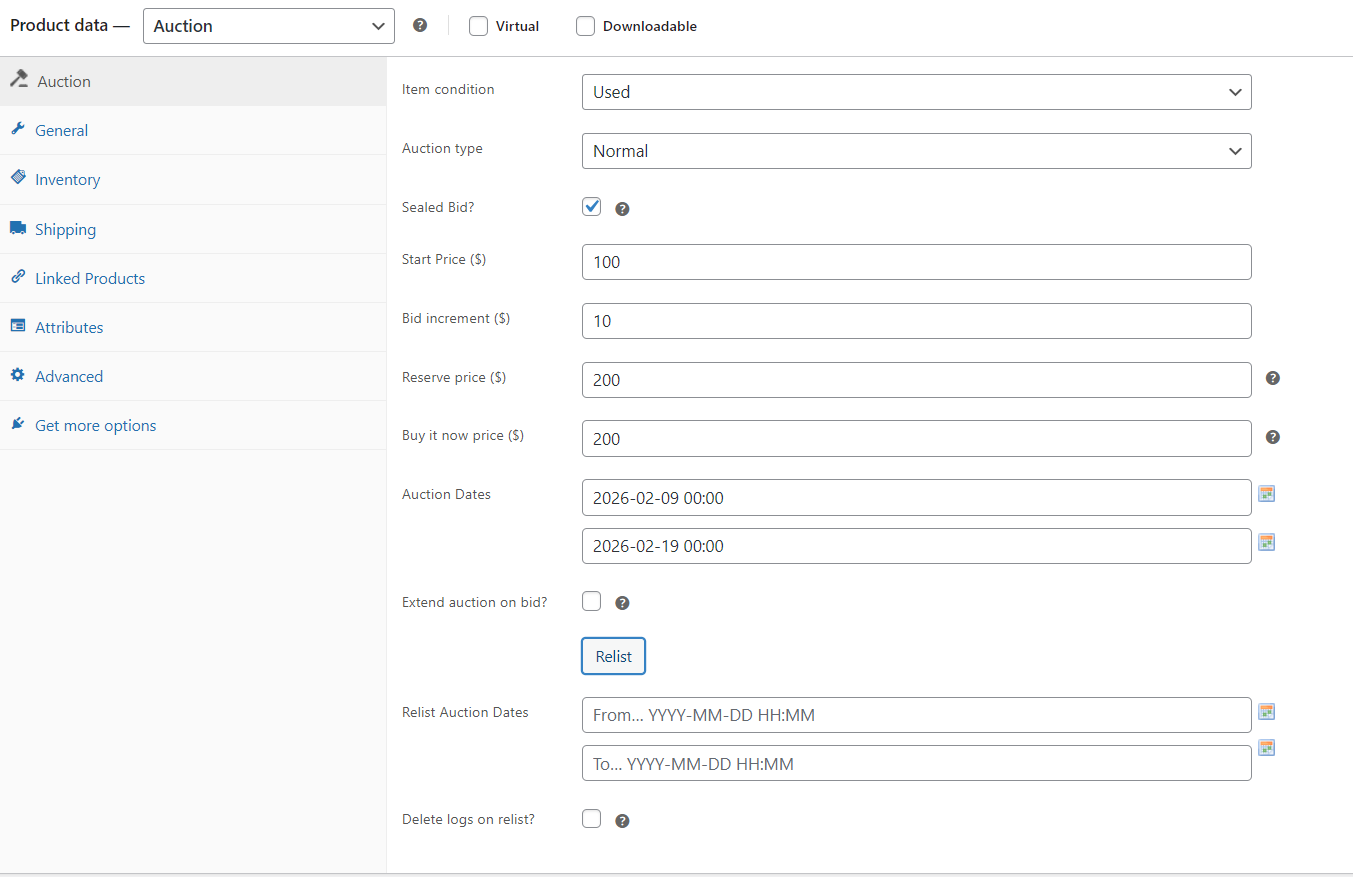 With the Simple Auctions plugin, all you need to do is decide which options are best for your store.