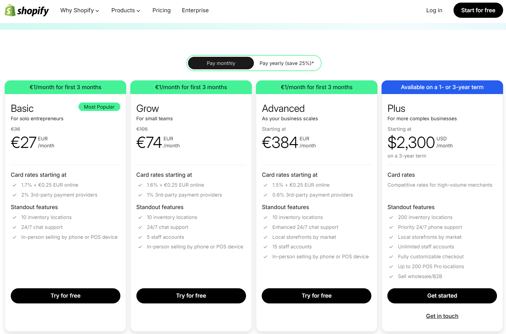 As a store owner, you simply choose a template, customize it to fit your brand, add products, and start selling. For this, you pay a monthly subscription (starting at $29 / âŹ27 per month for basic plans), and Shopify takes care of all the technical backend stuff. As a leading SaaS solution, data shows that in 2025, Shopify holds approximately 26-30% market share globally, supporting nearly 4.6 million stores worldwide.